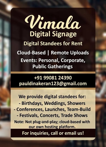We provide digital standee for all kinds of events we also helps you in creating the contents based on the requirement.